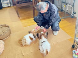 | わんちゃん;プリンちゃん、クッキーちゃん (パピヨン; 生後14歳、4歳) |